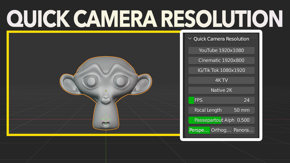 Introducing the "Quick Camera Resolution" addon for Blender! with this tool, changing the camera resolution type in Blender has never been easier.